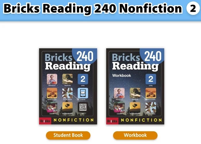(Instant Download)Bricks Reading 240 Nonfiction: High quality PDF (Student book, Workbook), audio, answer key, test, resources (Lesson plan, test, worksheet, Word list, Script ...)